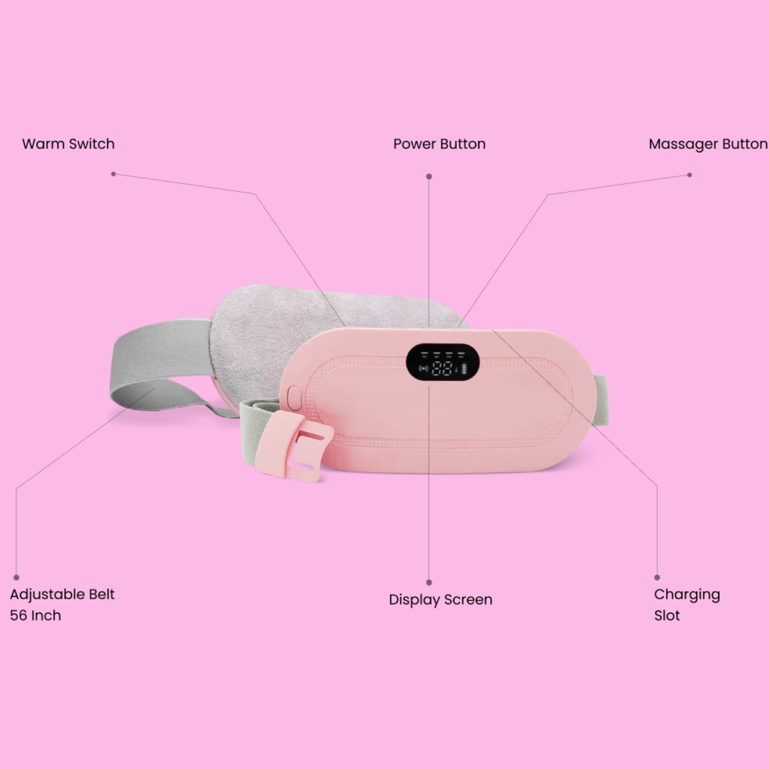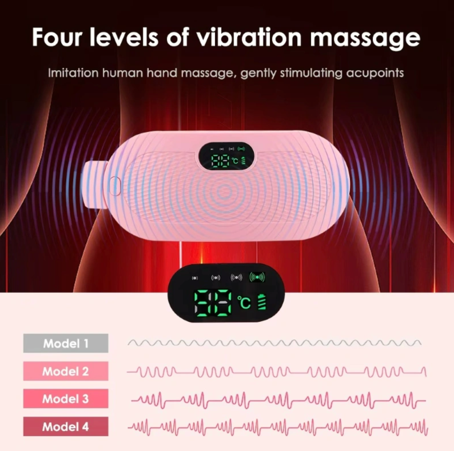 The Electric Heating Menstrual Cramp Massager is designed to provide women with a solution to their pain during menstrual cycle. It’s a wearable, portable device designed to relieve stomachache and abdominal discomfort using a combination of heat therapy and vibration massage. It typically wraps around the lower abdomen, delivering soothing warmth and gentle massage to alleviate cramps, bloating, and tension associated with menstruation.